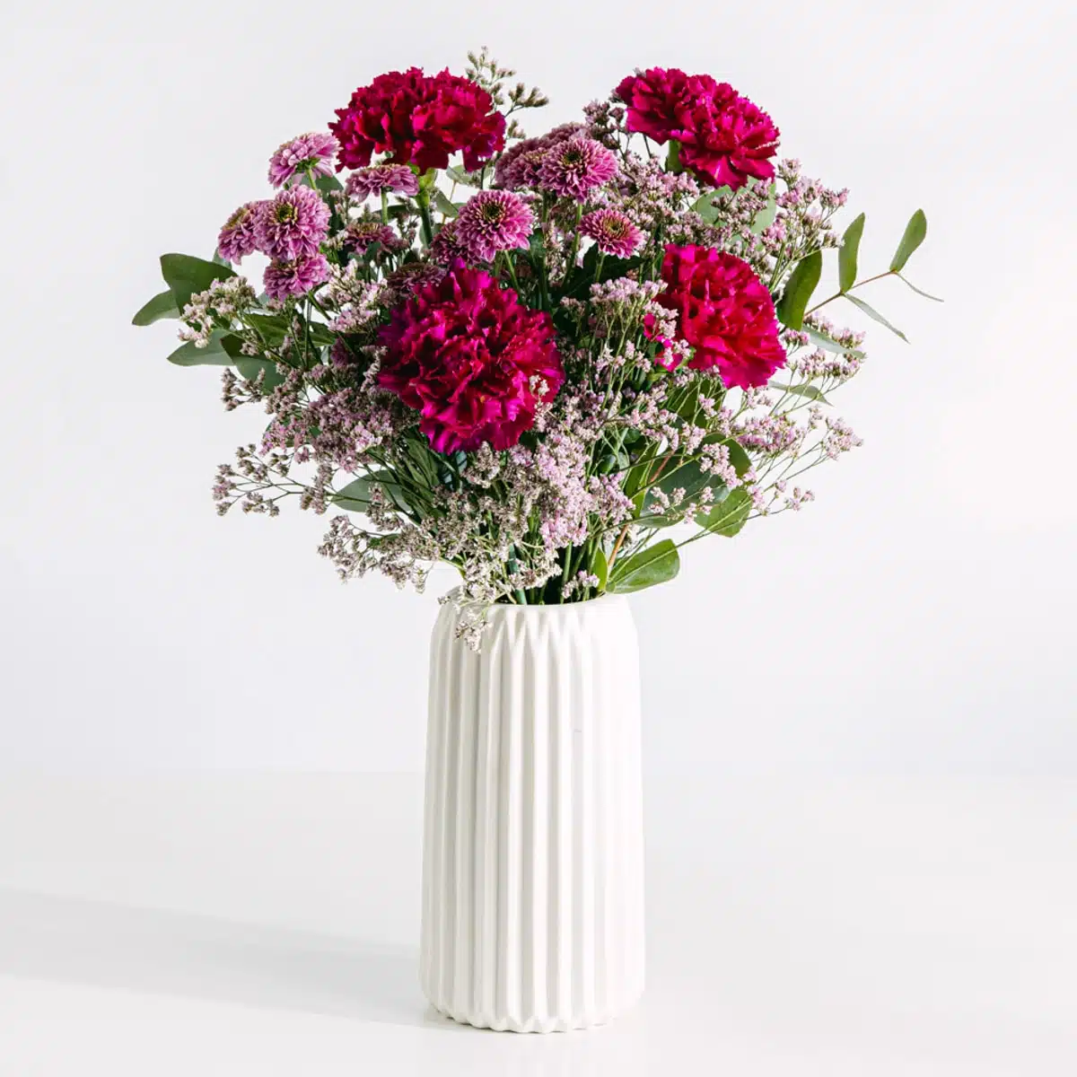 Déjate sorprender con este hermoso ramo de flores. Esta mezcla de claveles morados y crisantemos rosas es ideal para cualquier ocasión, desde regalos hasta decoración. Estas flores frescas darán un toque especial a tu hogar o al de tus seres queridos, ¡no te quedes sin el tuyo!
